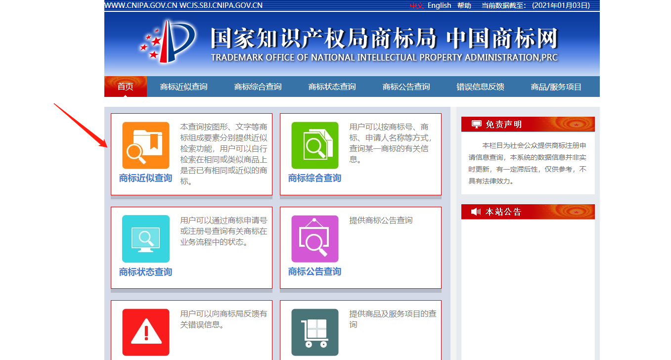 1、設計好商標后,進入商標局官網http://sbj.cnipa.gov.cn/sbcx/先檢索商標。