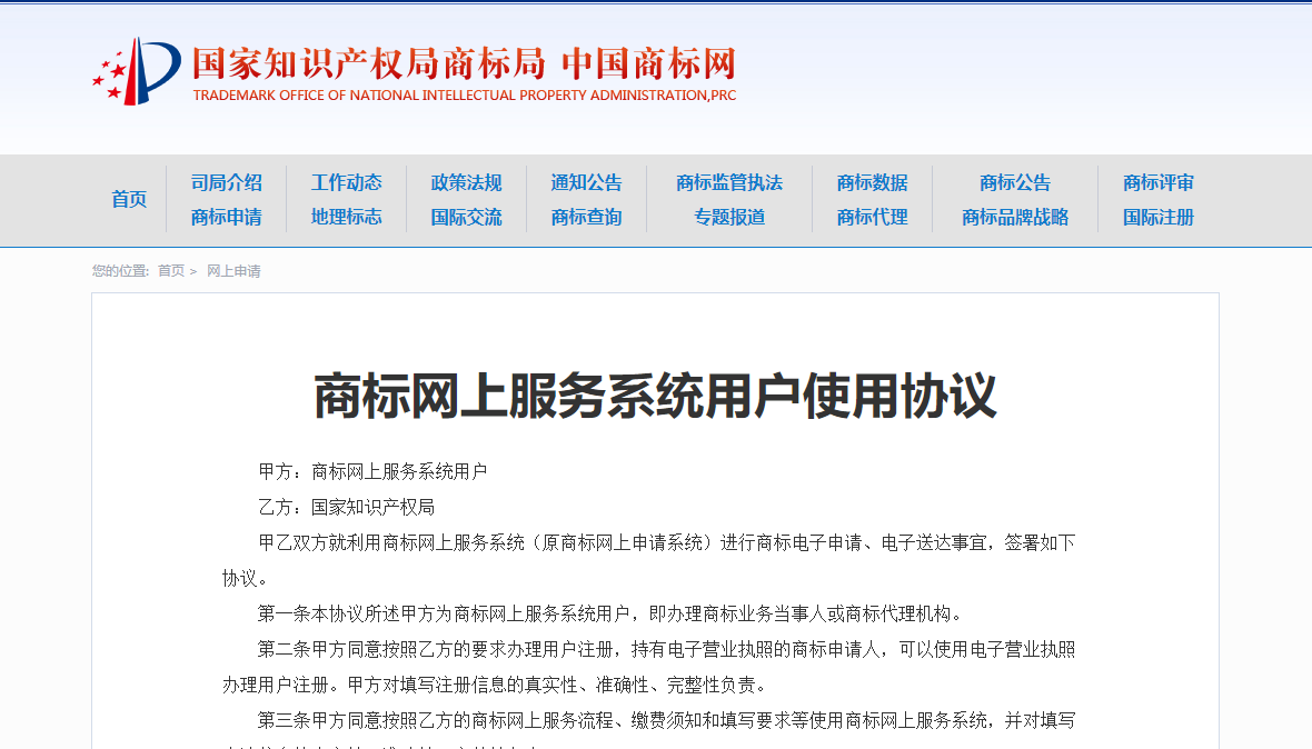 3、如果是選擇線上操作,直接在商標局官網辦理,選擇登錄方式,并閱讀協議。