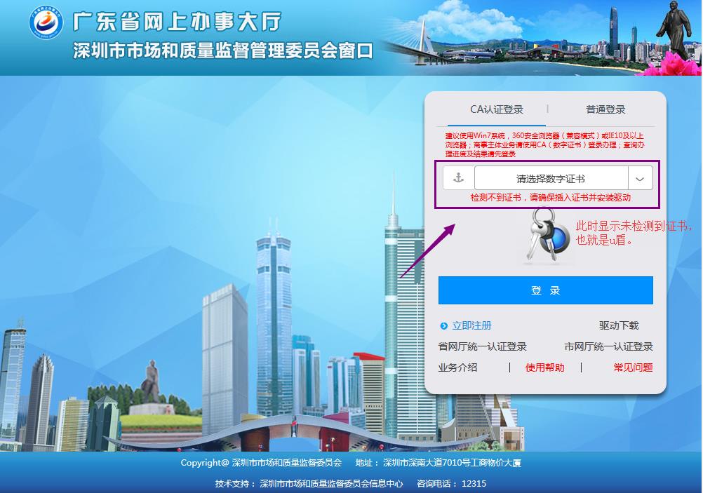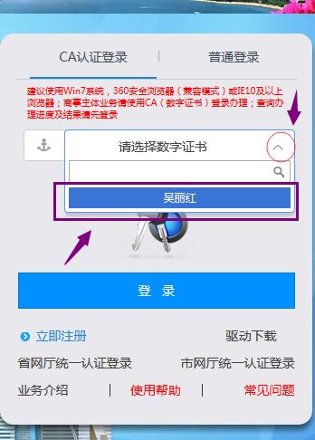 接下來,點擊下拉選項,選擇已經讀取到的u盾名稱,點擊下面的登錄:如下圖