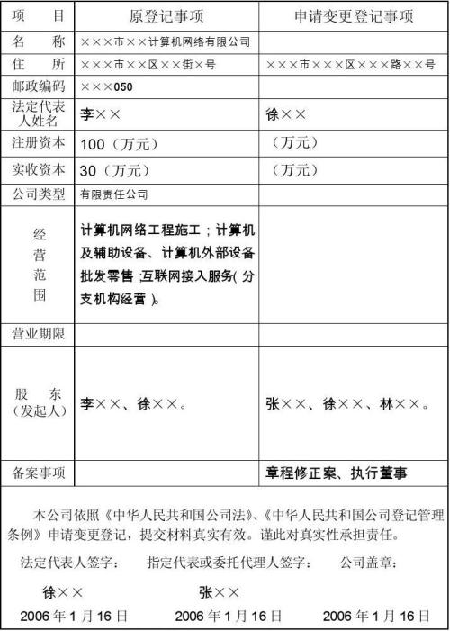 4、領取并填寫變更登記申請表,帶上公章,法人章,連同上述資料提交;