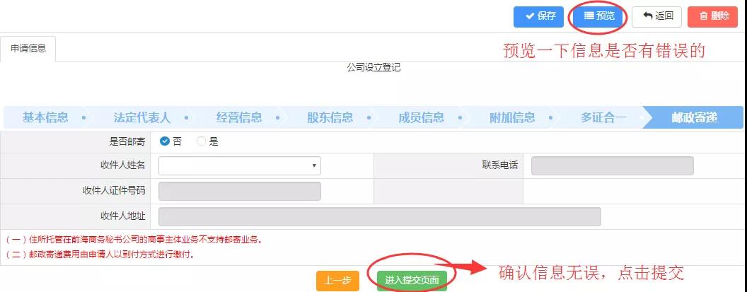 第十八步:確認信息 點擊“提交”,注意:可選擇郵寄到注冊地址。