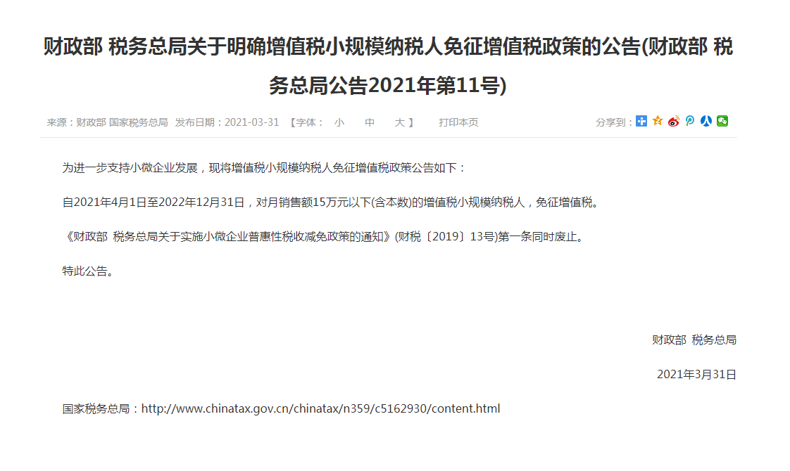 但小規(guī)模納稅人還有另外一個(gè)政策,月銷售額不超過15萬或季度銷售額不超過45萬,免征增值稅,該項(xiàng)政策持續(xù)至2022年12月31日。
