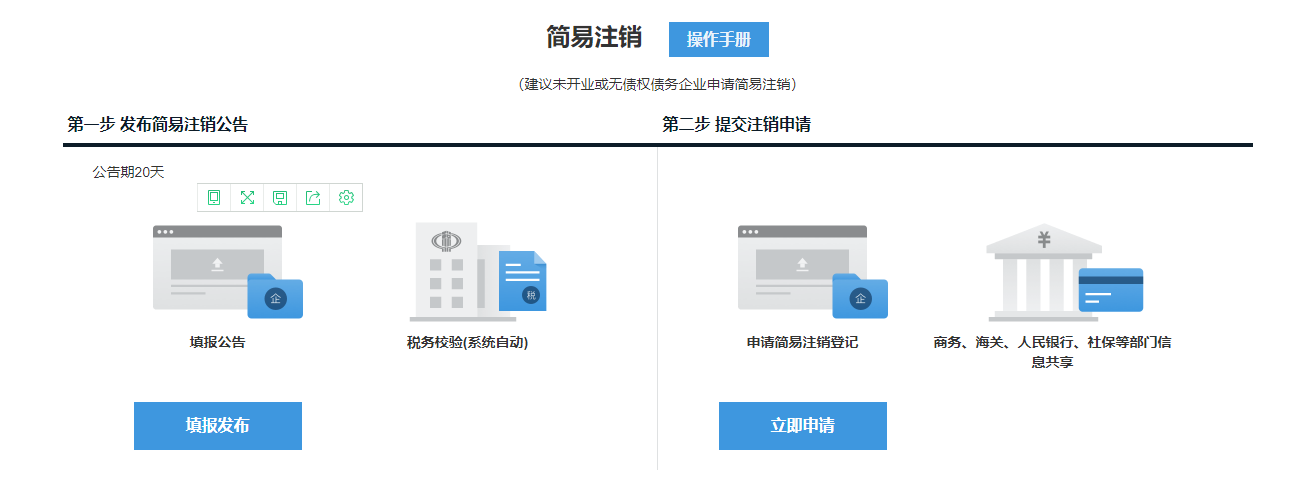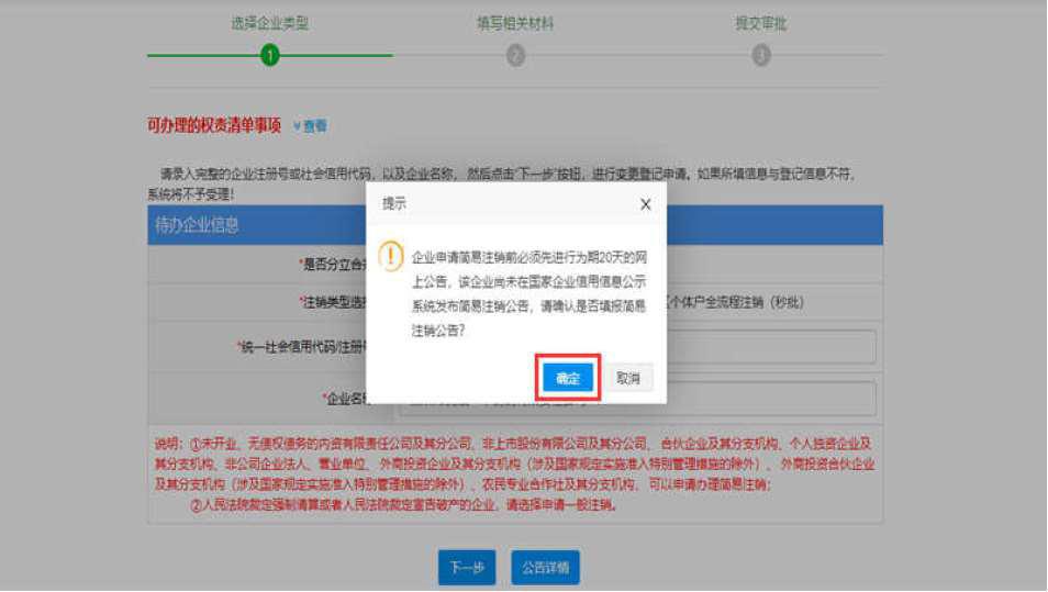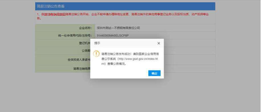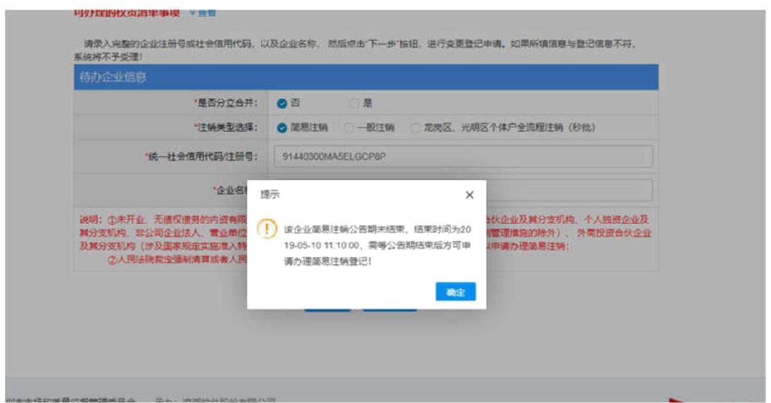 10、公示20天期滿可以進(jìn)行注銷操作,并確定企業(yè)可以進(jìn)行簡易注銷。