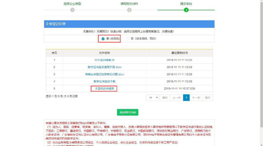 12、選擇全流程辦理,下載需要簽名的文件,插入U(xiǎn)盾簽名后提交。審核通過后即辦理完成。